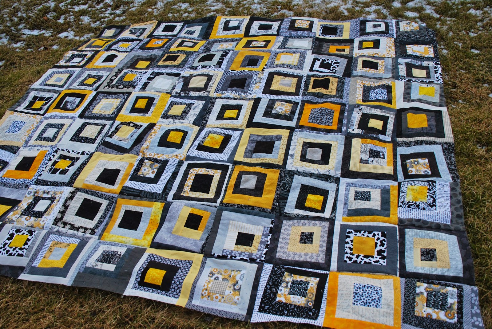 Noen av de grå og gule stoffene kjøpte jeg inn i sommer med tanke på et slikt teppe. Jeg har nemlig gått svanger med dette prosjektet i lang tid. Men nå er det ferdig, og noen andre skal få ta jobben med å quilte det. Til og med Sacre Ceur er med i teppet.